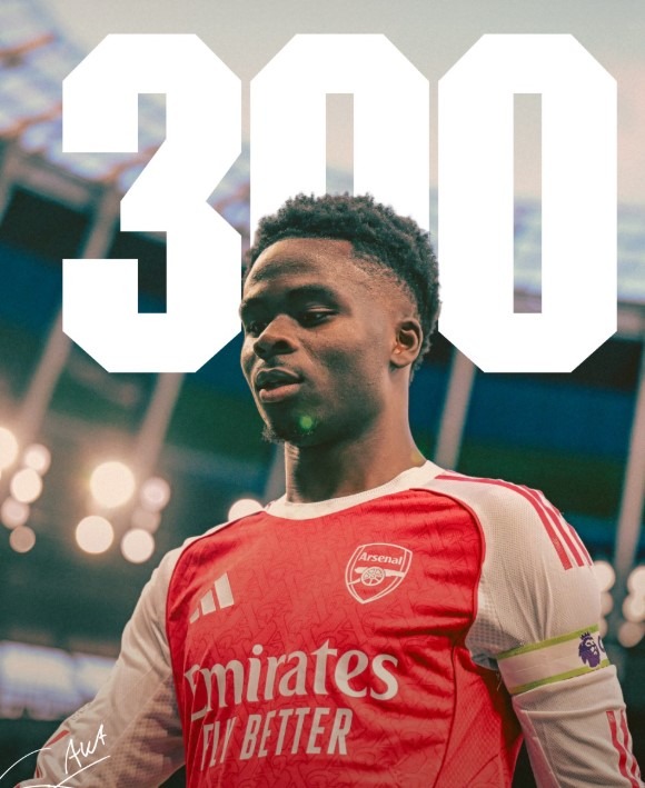 Pertandingan ini terasa semakin spesial bagi Saka karena menjadi penampilan ke-300 dirinya bersama tim utama Arsenal.