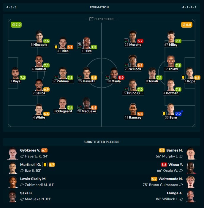 - Skor: Arsenal 1-0 Newcastle