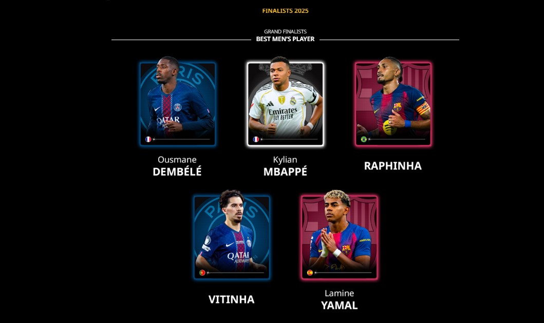 Sorotan utama tertuju pada dua peraih Ballon d’Or, yakni Ousmane Dembélé dan Aitana Bonmatí, yang kembali masuk daftar finalis Pemain Terbaik Putra dan Putri.
