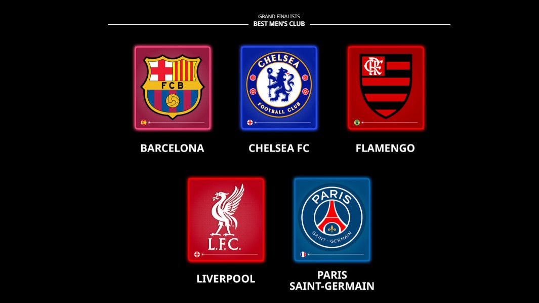 Untuk kategori Klub Putri Terbaik, empat raksasa Eropa yang lolos ke final adalah Arsenal, Barcelona, Chelsea, dan Juventus.