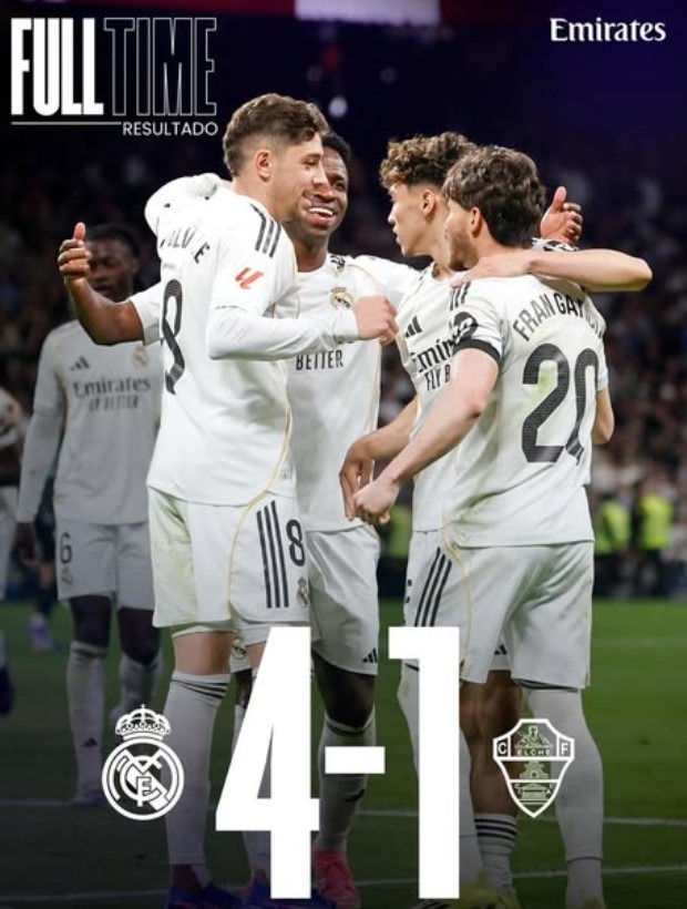 Strategibola – Real Madrid meraih kemenangan meyakinkan dengan skor 4-1 atas Elche dalam lanjutan kompetisi LaLiga yang berlangsung di Santiago Bernabeu, Sabtu malam. Pertandingan tersebut bukan hanya memberikan tiga poin penting bagi Los Blancos, tetapi juga menghadirkan satu momen luar biasa yang langsung menjadi perbincangan di dunia sepak bola.