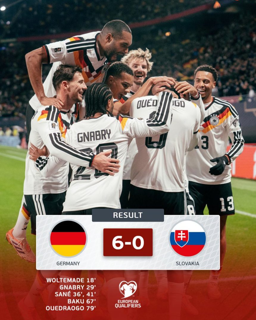 Kemenangan telak ini sekaligus menjadi kemenangan beruntun kelima Jerman—pertama kalinya sejak tahun 2021 di era Hansi Flick—dan memastikan langkah Der Panzer menuju Piala Dunia 2026.