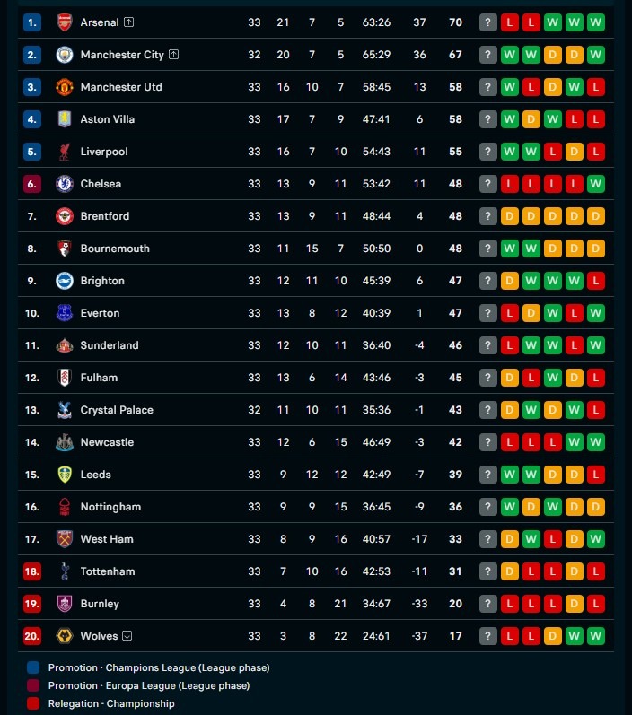 Saat ini, Arsenal sedikit unggul dalam selisih gol. Namun, dengan sisa pertandingan yang ada, keunggulan tersebut bisa berubah kapan saja.