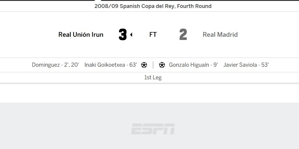 Pada Copa del Rey 2008/2009, Real Madrid kembali dipermalukan klub kecil. Kali ini oleh Real Union, tim divisi tiga.