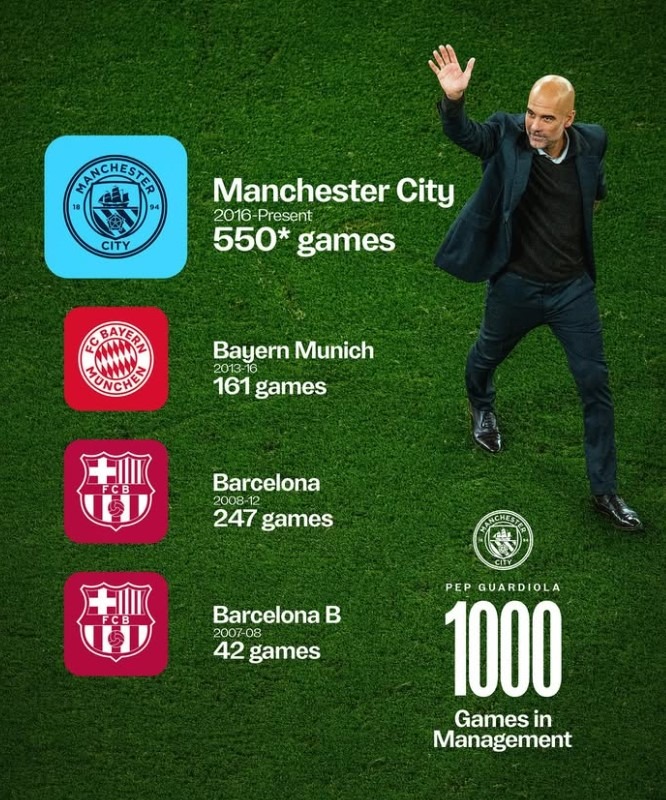 Bagi Guardiola, laga ini menjadi momen bersejarah — laga ke-1000 sepanjang karier manajerialnya — dan ia merayakannya dengan kemenangan yang nyaris sempurna.