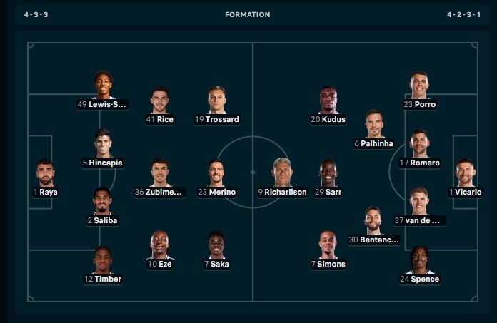 Arsenal diprediksi tampil agresif di sektor sayap lewat Saka dan Trossard. Dengan Rice dan Zubimendi sebagai poros, mereka memiliki keseimbangan antara transisi bertahan dan menyerang. Masuknya Eze memberikan variasi dribel dan kreativitas ekstra di area tengah.