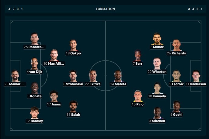 Liverpool (4-2-3-1): Woodman; Ramsay, Gomez, Van Dijk, Robertson; Endo, Mac Allister; Chiesa, Szoboszlai, Ngumoha; Ekitike