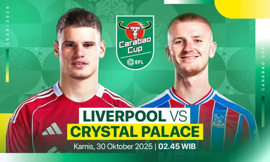 Pertandingan babak keempat Carabao Cup 2025/2026 antara Liverpool vs Crystal Palace akan digelar di Anfield pada Kamis, 30 Oktober 2025, pukul 02.45 WIB, dan dapat disaksikan melalui live streaming di Vidio.