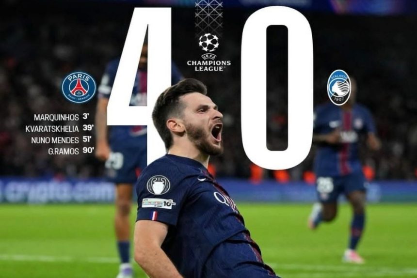 Strategibola – PSG mengawali Liga Champions 2025/2026 dengan kemenangan telak 4-0 atas Atalanta di Parc des Princes. Marquinhos , Kvaratskhelia , Nuno Mendes , dan Goncalo Ramos masing-masing sumbang gol.
