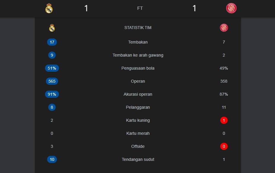 Girona sendiri tidak hanya bertahan. Mereka beberapa kali mengancam melalui pergerakan Azzedine Ounahi, meskipun belum mampu menghasilkan gol.