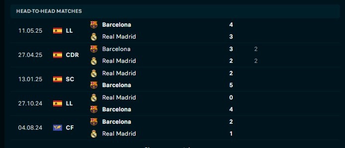Head-to-Head Real Madrid vs Barcelona