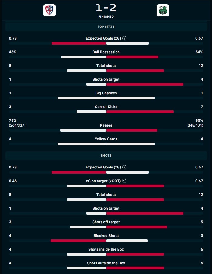 Kesimpulan: Sassuolo Bangkit, Cagliari Terpuruk