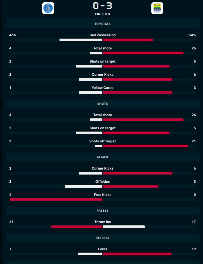 Dominasi Persib terlihat sepanjang laga, terutama di babak kedua ketika serangan mereka semakin tajam dan efektif.