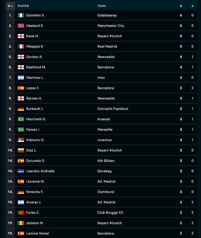 Penyerang berusia 26 tahun itu kini telah mencatatkan enam gol di Liga Champions musim ini, melewati torehan nama-nama besar seperti Harry Kane, Kylian Mbappé, dan Erling Haaland.