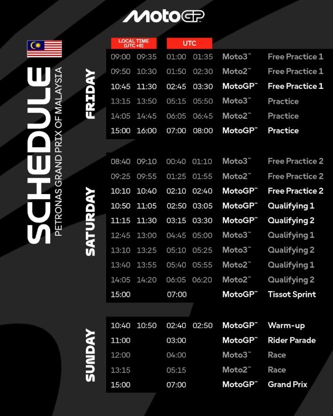 • Sabtu (25/10): Kualifikasi & Sprint Race