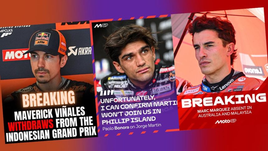 Menjelang seri ke-19 MotoGP 2025 di Sirkuit Phillip Island, Australia (17–19 Oktober 2025), tiga nama besar dipastikan absen bersamaan.